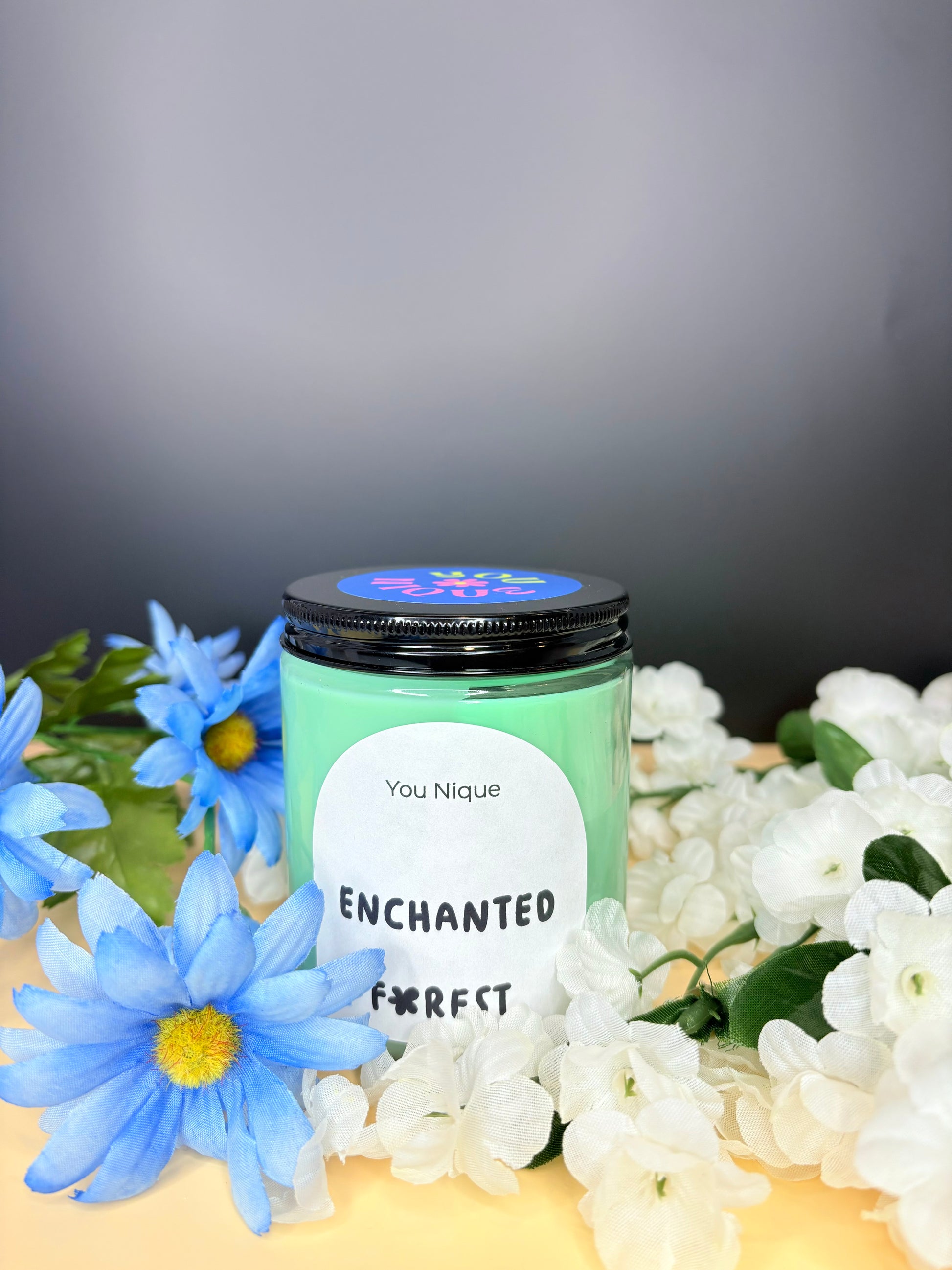 Enchanted Forest is a handmade coconut soy wax blend traditional wick candle from our original collection. This candle has the scents of the OG candle Spa Nights. With the scents of Cucumber and Melon this candle is perfect for a self care night!!